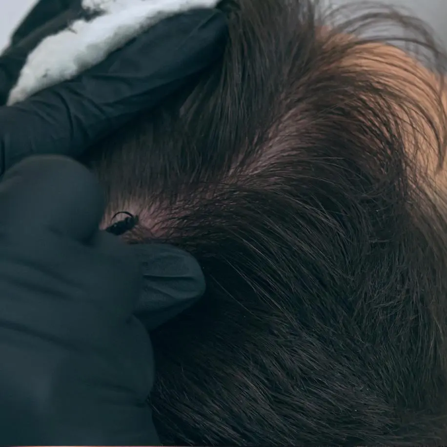 Micro-pigmentation involves using a fine needle or blade to take tiny dots of a pigment and implant it into the skin, creating the illusion of full hair.